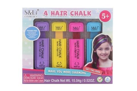 Křídy na vlasy. Balení obsahuje 4 barvy. Baleno v krabičce. Rozměry balení cca 18x15,5x2,5 cm. Věk 5+