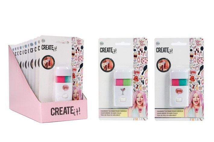 Křídy na vlasy a tělo 2 ks. Osahuje 2 křídy v barvách světle růžová / světle modrá nebo tmavě růžová / tmavě modrá. Dermatologicky testováno, odpovídá normám EU.