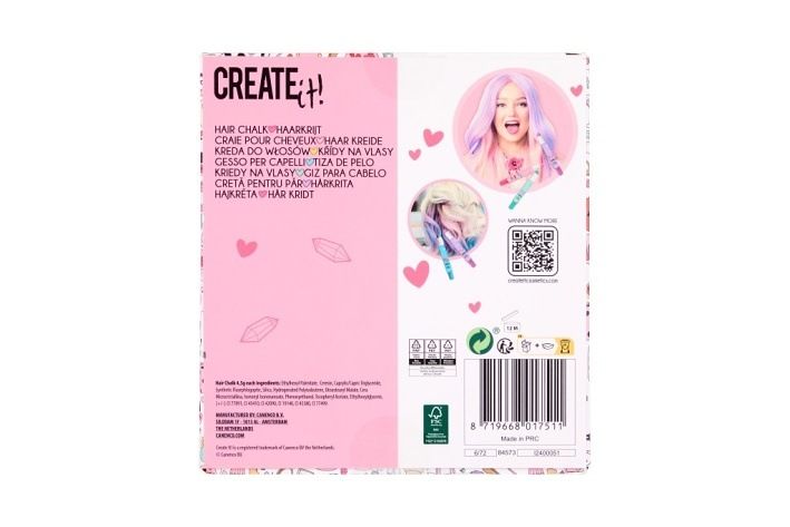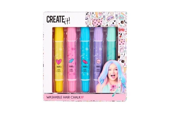 Křídy na vlasy v tužce Creat it! 5 ks – balení obsahuje 5 ks barevných kříd na vlasy v praktické tužce. Velmi jednoduché použití. Barvy – světle růžová, tyrkysová, zelená, fialová a tmavo růžová.
