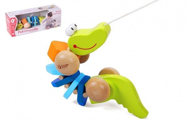 Tahací krokodýl je jednnoduchá hračka na kolečkách, která je vyrobena z kvalitního dřeva a je určená pro děti od 1 roku. Tato hračka bude skvělým pomocníkem pro děti při jejich prvních krůčcích. Hračka pomáhá rozvíjet jemnou motoriku rukou.