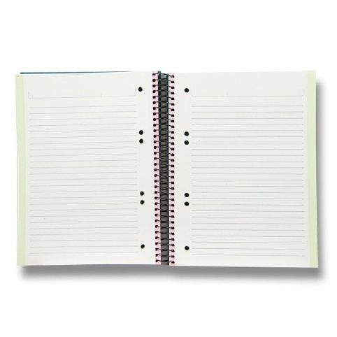 Kroužkový blok s boční kovovou spirálou a tvrdými deskami. Blok je s perforací pro snažší odtržení stránek a s děrováním. Papír 80 g. Formát A5, 100 listů.