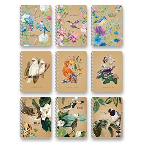 Kroužkový blok Shkolyaryk Birds s motivy ptáčků má boční kovovou spirálu a tvrdé desky. Formát B6, 80 listů, čistý. Papír 70 g. Mix motivů.
