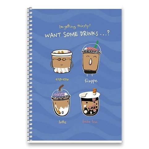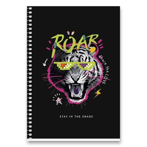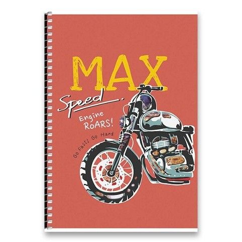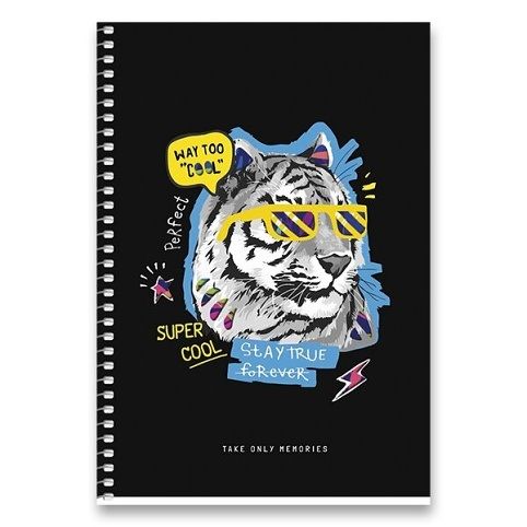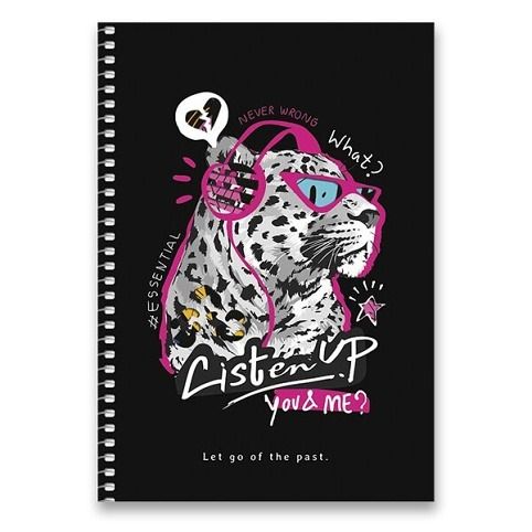 Kroužkový blok Shkolyaryk Cool s boční kovovou spirálou a tvrdými deskami, čistý. Papír 70 g, v krémové barvě. Formát A5, 96 listů. Mix motivů.