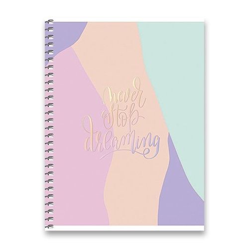 Kroužkový blok Shkolyaryk v pastelových barvách má boční kovovou spirálu a tvrdé desky. Formát B6, 80 listů, čtverečkovaný. Papír 70 g. Mix 9 motivů.
