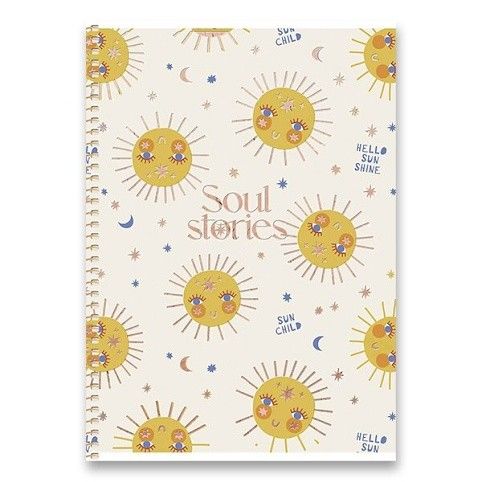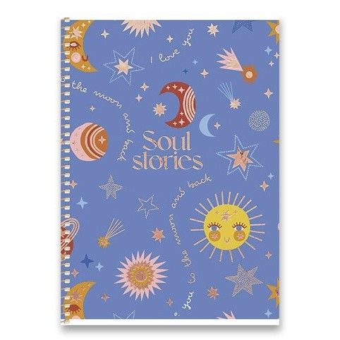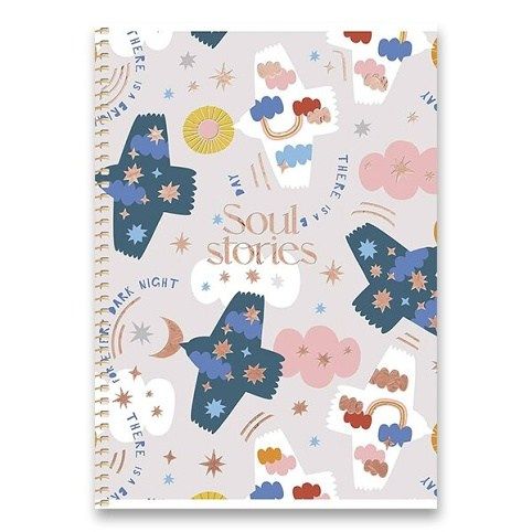 Kroužkový blok Shkolyaryk Soul Stories s boční kovovou spirálou a měkkými deskami, čtverečkovaný. Papír 90 g. Formát B5, 80 listů. Mix motivů.