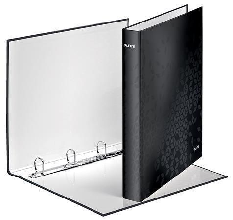 Kroužkový pořadač "Wow", černá, lesklý, 4 kroužky, 40 mm, A4, karton, LEITZ