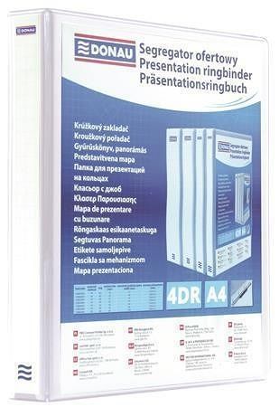 Kroužkový pořadač, s průhlednými kapsami, bílá, 4 D kroužky, 44 mm, A4, PP, DONAU