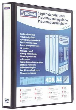 Kroužkový pořadač, s průhlednými kapsami, černá, 4 D kroužky, 80 mm, A4, PP, DONAU