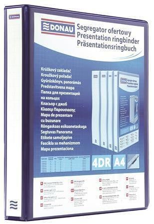 Kroužkový pořadač, s průhlednými kapsami, modrá, 4 D kroužky, 44 mm, A4, PP, DONAU