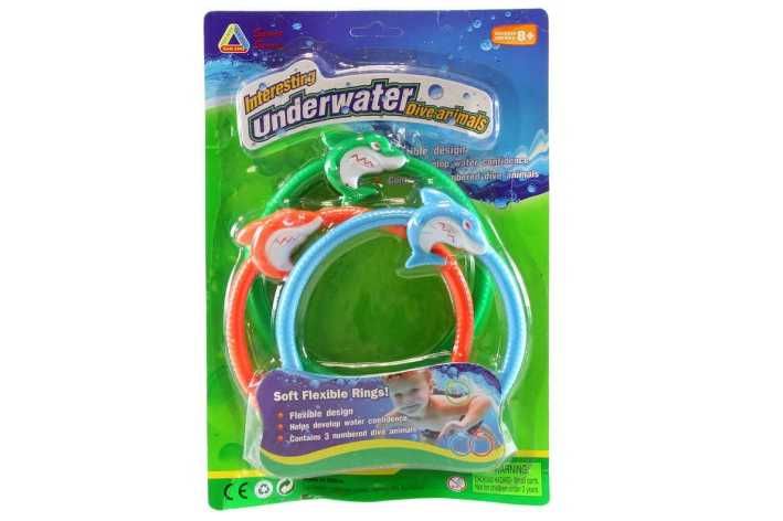 Kroužky do vody. Vhodné pro zpestření plaveckého a potápěčského výcviku nebo využití v domácím bazénu. - Kroužky jsou v barvě modrá, zelená, oranžová. - Průměr cca 14 cm.