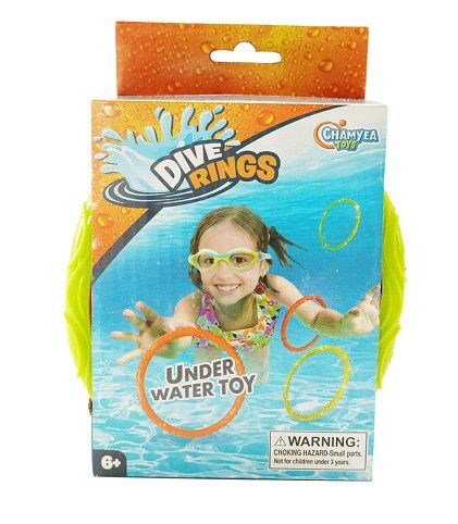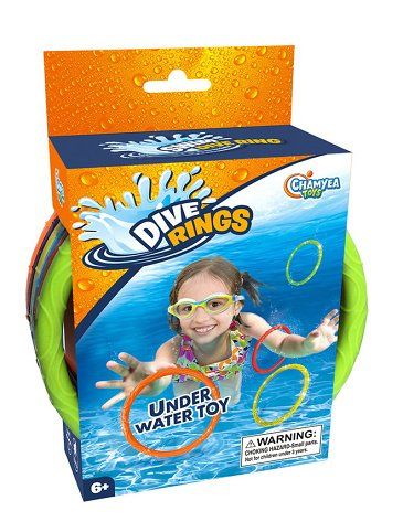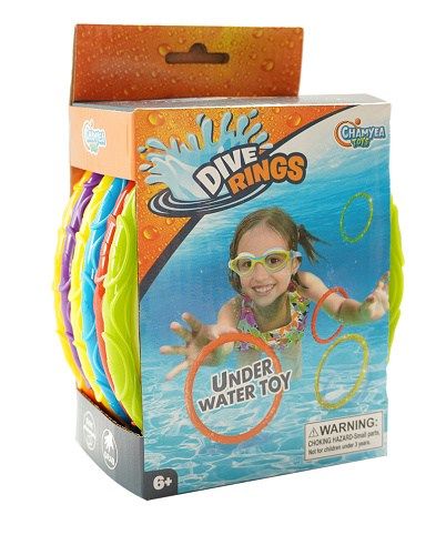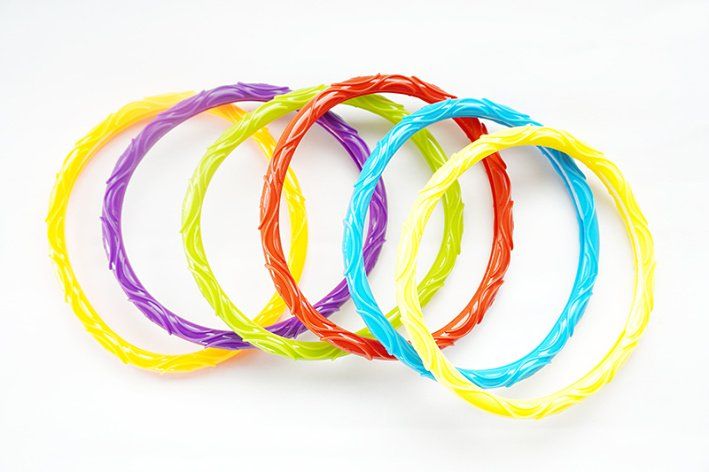 Barevné kroužky, které se ve vodě potopí. Vhoď kroužky do vody a snaž se je vylovit.