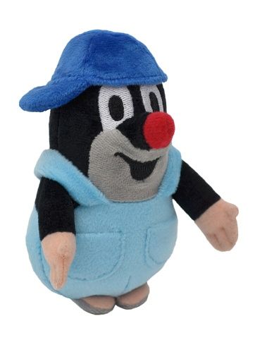 Plyšový Krteček v kalhotkách s kapsami a sundavací kšiltovkou.