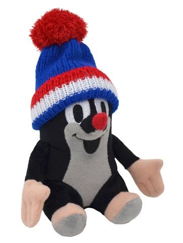 Krtek 14 cm sedící, kulich modrý-trikolora, plyšová hračka