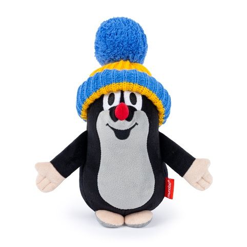 Roztomilý plyšový Krteček se sundavací pletenou čepičkou. Nejenže je měkoučký a hebký, ale díky naplnění drobnými fazolkami v dolní části podporuje rozvoj smyslového vnímání a hmatových dovedností vašeho dítěte, a také díky nim lépe stojí.