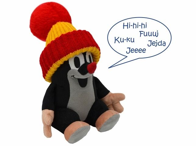 Sedící Krteček se sundavací čepicí, který po zmáčknutí náhodně přehrává vybrané originální zvuky z pohádek o Krtečkovi. Vyměnitelné baterie 3xLR44 jsou součástí. V dárkové krabičce. Cena vč. PHE.