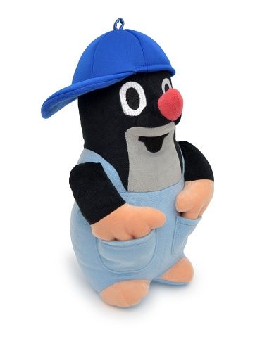 Plyšový Krteček v kalhotkách s kapsami a sundavací kšiltovkou. Výška 26cm.