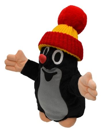 Plyšový maňásek mírně vycpaný, se sundavací čepicí, výška 30cm.