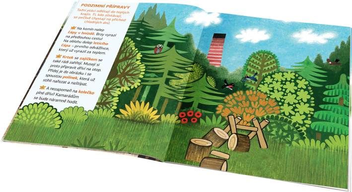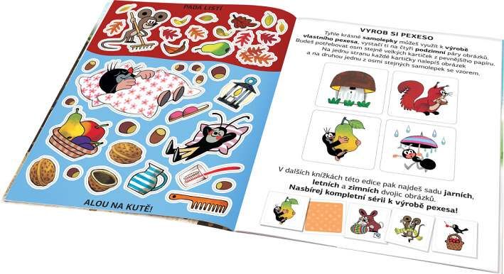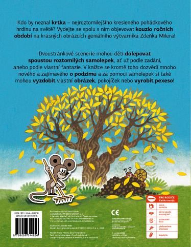 Kdo by neznal krtka – nejroztomilejšího kresleného pohádkového hrdinu na světě? Vydejte se spolu s ním objevovat kouzlo ročních období na krásných obrázcích geniálního výtvarníka Zdeňka Milera! Dvoustránkové scenerie mohou děti dolepovat spoustou roztomilých samolepek, ať už podle zadání, anebo podle vlastní fantazie. V knížce se kromě toho dozvědí mnoho nového a zajímavého o podzimu a za pomoci samolepek si také mohou vyzdobit vlastní obrázek, pokojíček nebo vyrobit pexeso!