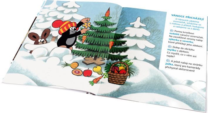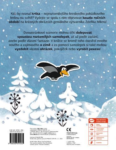 Kdo by neznal krtka – nejroztomilejšího kresleného pohádkového hrdinu na světě? Vydejte se spolu s ním objevovat kouzlo ročních období na krásných obrázcích geniálního výtvarníka Zdeňka Milera! Dvoustránkové scenerie mohou děti dolepovat spoustou roztomilých samolepek, ať už podle zadání, anebo podle vlastní fantazie. V knížce se kromě toho dozvědí mnoho nového a zajímavého o zimě a za pomoci samolepek si také mohou vyzdobit vlastní obrázek, pokojíček nebo vyrobit pexeso!