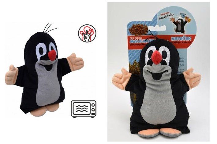Nahřívací plyšový maňásek Krteček. Obsahuje pytlík se lněným semínkem, který můžete nahřát v mikrovlnné troubě, vložit do Krtečka a použít jako termofor. Oči vyšívané. Pratelný bez náplně.