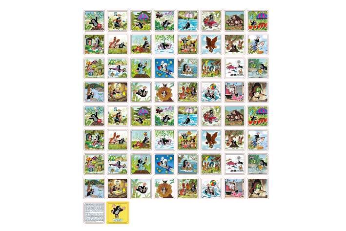Krtek Pexeso v krabičce letní radovánky. 64 kartiček, 32 párů. Rozměr kartiček 63x63mm. Papír 350g.