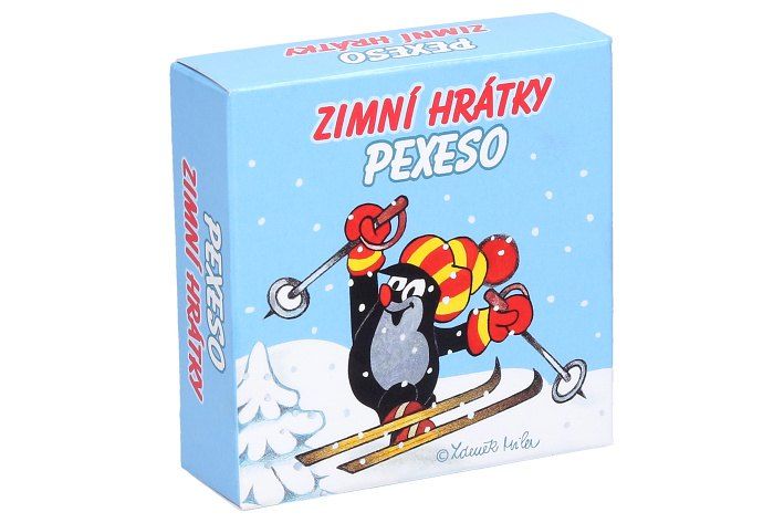Krtek Pexeso v krabičce zimní hrátky. 64 kartiček, 32 párů. Rozměr kartiček 63x63mm. Papír 350g.