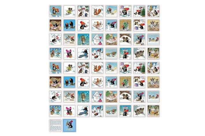 Krtek Pexeso v krabičce zimní hrátky. 64 kartiček, 32 párů. Rozměr kartiček 63x63mm. Papír 350g.