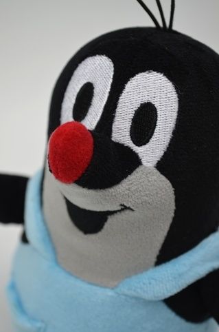 "Plyšový Krteček v kalhotkách s kapsami. Hračka je ve spodní části naplněna ""fazolkami"" pro stabilizaci polohy a rozvoj citu a hmatu dětí. "