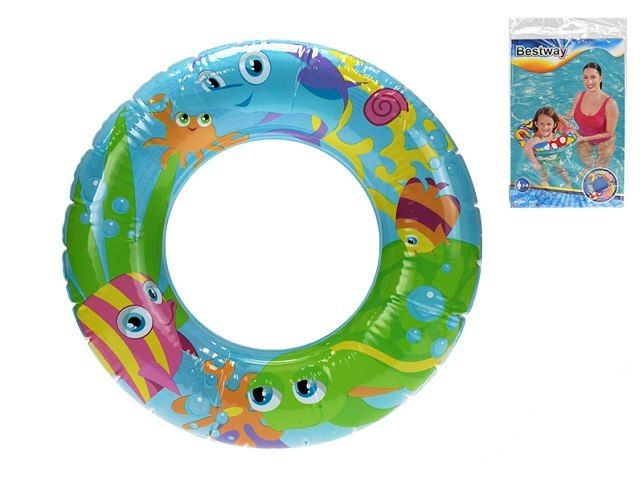 Nafukovací kruh 56cm transparentní v sáčku. Vybrat si můžete ze tří druhů: ryba, mečoun a mořský šnek Vhodný pro děti od 3 do 6 let.