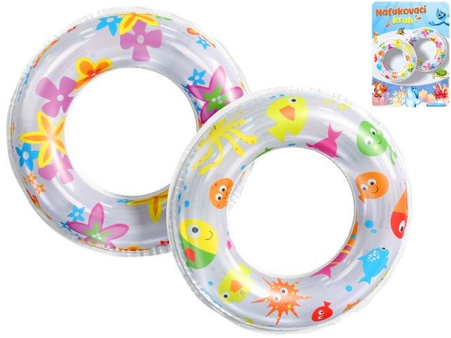 Nafukovací kruh je důležitou pomůckou pro děti do bazénu či k moři. Kruh je vyrobený z pevného kvalitního materiálu. Po nafouknutí má kruh celkový průměr 51 cm. Dostupné jsou dva druhy - kytičky a mořská zvířátka. Vhodné pro děti 3-6 let.
