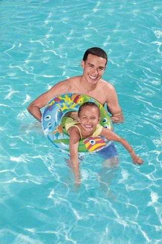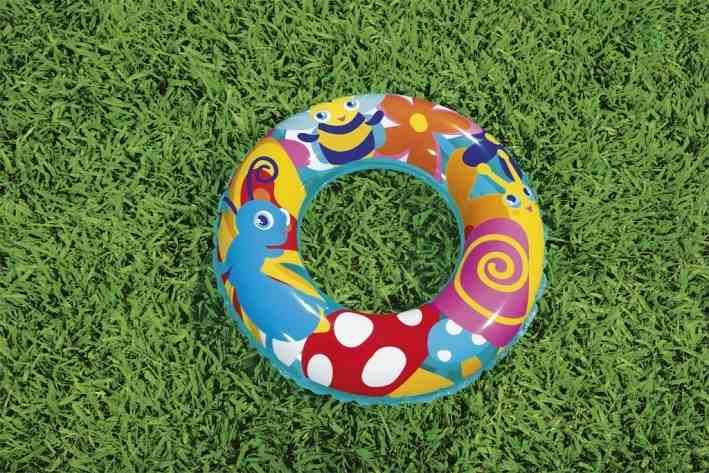 Plovací kruh s veselým dětským motivem je vyroben z kvalitního vinylu a je vhodný pro děti od 3 do 6 let. Průměr kruhu je 56 cm a je ve 2 provedeních.