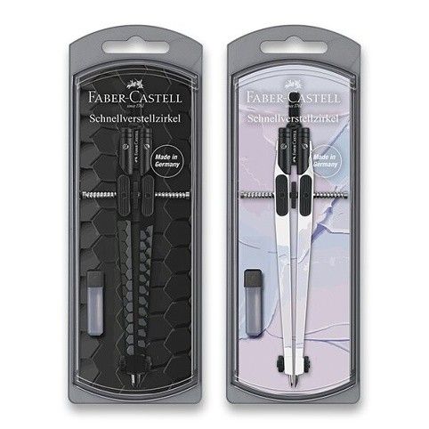 Kružítko Faber-Castell Grip Quick-Set Compass Trend Dark & Bright je kvalitní kružítko v designu GRIP pro kružnice do průměru 390 mm. Díky robusnímu systému zvládne rychlé a přesné nastavení poloměru. Jehla je odolná proti proklouznutí. Kvalitní tuha s pevným upevněním pro precizní práce. Souprava obsahuje kružítko, náhradní tuhy a náhradní jehlu.