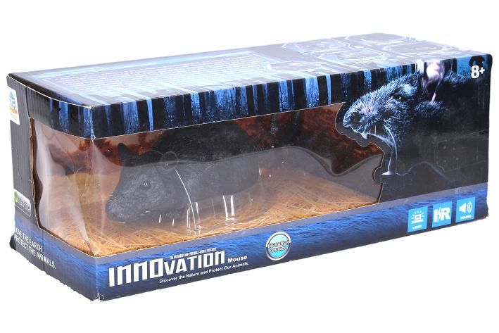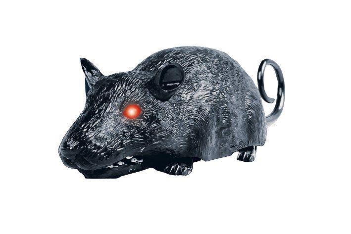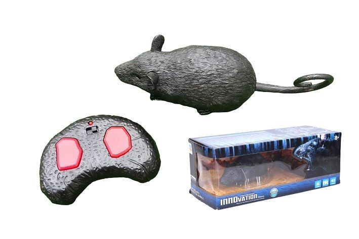 Krysa RC na dálkové ovládání. Velikost 22 cm. Infračervený port, kanál A,B,C. Světelné efekty. 2xAAA baterie do krysy, 3xAAA do ovladače nejsou součástí. Přepínač ON/OFF na spodní straně krysy. Levé tlačítko - pohyb dopředu, pravé tlačítko - otáčení. Podržením obou tlačítek po dobu 7 vteřin - demo funkce, přerušení levým tlačítkem. Manuální otevírací tlama.