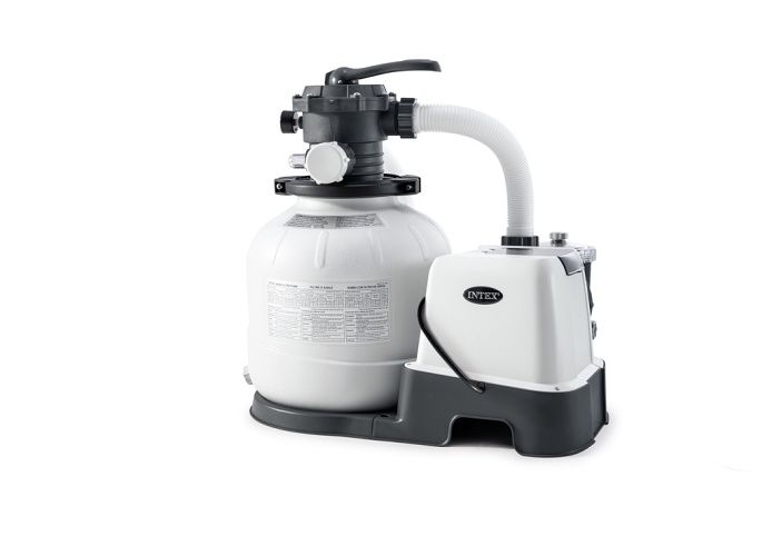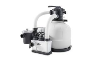 Pískový filtr s čerpadlem a solinátorem o výkonu 220–240 V. Tento