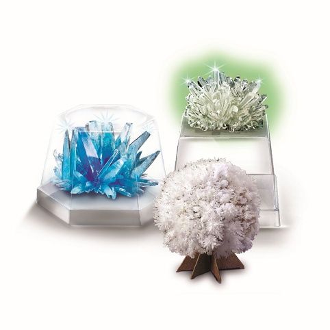Proveď řadu chemických pokusů - pěstuj si vlastní sadu akvamarinových krystalů, ve tmě zářícíh měsíčních krystalů a krystalových stromů. Pozoruj, jak vzniká uskupení krystalů z roztoků. Vyrob si celou sbírku a ukaž svým přátelům!