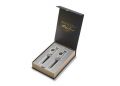 Lakované tělo z broušené nerezové oceli a vrchní část z broušené nerezové oceli. V kombinaci s doplňky z nerezové oceli pokovenými chromem, s leštěnou úpravou.Kuličková tužka (kuličkové pero, propiska):stiskací mechanismusmodrá nebo černá náplň pro kuličkové tužky - dle skladové dostupnostiMechanická tužka (mikrotužka):stiskací mechanismutuha HB o síle 0,5 mmVyrobeno ve Francii. Dodáváno v elegantním dárkovém balení.