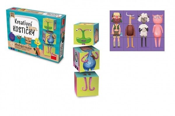 Na každé straně dřevěných kostiček se nachází části veselých příšerek s legračními hlavami, tvářemi i končetinami.