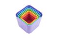 Kubus pyramida skládanka plast hranatá barevná 7ks v sáčku 12m+