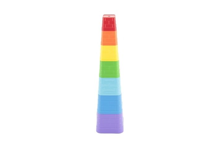 Skládací pyramida je jednou z nejzákladnějších a nejběžnějších hraček u malých dětí. Je ovšem velmi důležitá pro rozvoj smyslů. Při skládání této plastové pyramidy si děti rozvíjí jemnou motoriku prstů. Barevné části do sebe hezky zapadají.