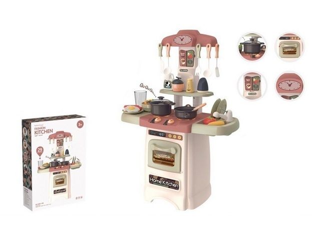 Nádherná dětská kuchyňka v moderních barvách, umožňuje dětem vychutnat si vaření jako ve skutečné kuchyni. Děti se při hře mohou učit nejen vařit, ale i řádně stolovat. Dětská kuchyňka umožní dětem být ve světě dospělých a to děti baví. Připravit pro své hosty pohoštění, umýt nádobí, napéct přesně to je pro malé kuchaře opravdovou zábavou. Kuchyňka má zvukové a světelné efekty pro reálnější vzhled. Materiál: plastRozměr produktu: 62 x 45 x 21,5 cmDoporučený věk: 3 +