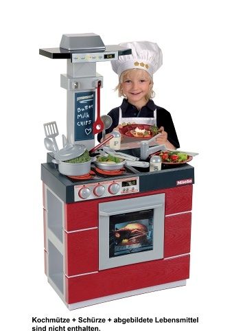 Kuchyňka Miele s troubou vpředu a úložnými prostory z boční strany. Výška kuchyňky je 88,5 cm, šířka je 47 cm a výška pracovní plochy je 45 cm.
