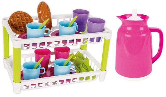 Kuchyňská sada se stojanem – má 31 dílů (poličku, hrnečky, talířky, konvici, příbory, vafle atd.). Vhodná pro děti od 3+.