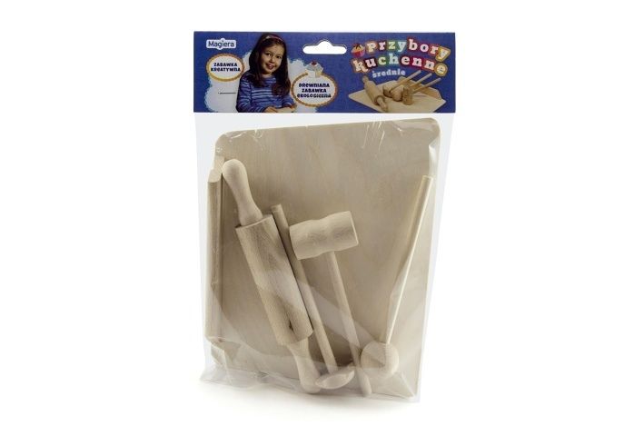 Žádná kuchařka se neobejde bez základního vybavení její kuchyňky. Produkty v této sadě jsou vyrobeny z kvalitního dřeva a jsou k nerozeznání od těch doopravdických kuchyňských potřeb. Tato sada zaručeně potěší každou malou kuchařku. Vhodné pro malé kuchařky od 2 let.