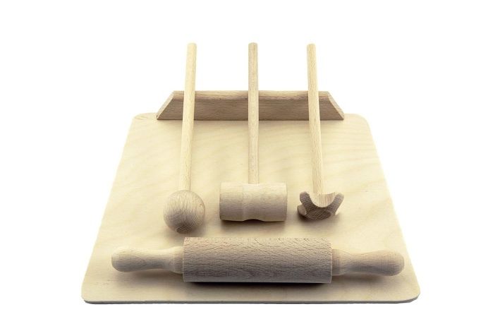 Kuchyňské nádobí prkénko, váleček, palička dřevo 20cm v sáčku
