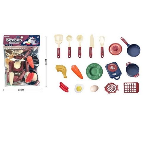 Kuchyňský set. Součástí vařič, nádobí a jídlo.