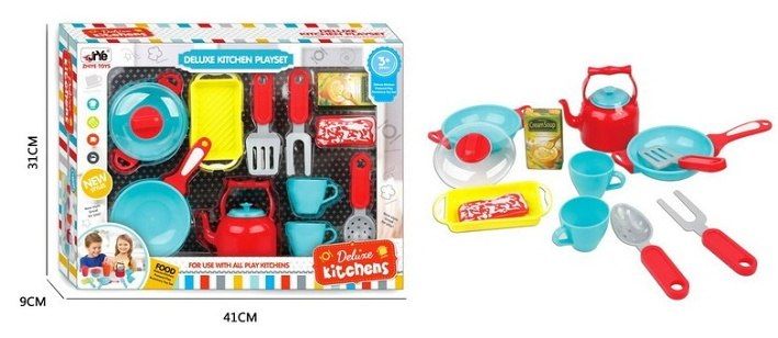 Kuchyňský set. Obsahuje nádobí a jídlo.