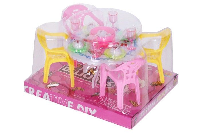 Barevný jídelní set pro panenky nesmí chybět ve tvém pokojíčku! Připrav pro panenky výborný oběd s dezertem!