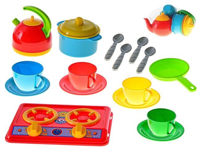 Kuchyňský sporák s nádobím 11ks v síťce