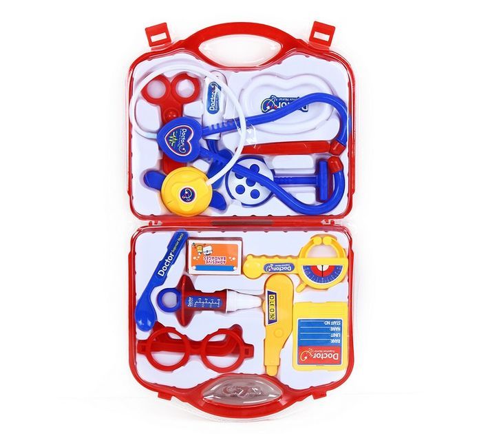 Profi set pro malé lékaře a lékařky! Praktická sada obsahuje plastové náčiní, bez kterého se opravdový lékař neobejde. Stetoskop, teploměr, léky. To vše a mnoho dalších najdeš v tomto praktickém kufříku. Vše je vyrobeno z PVC. Staň se profesionálním doktorem a přenes se do světa opravdové medicíny! Barvy příslušenství se mohou lišit.