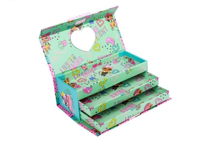 Plastový kufřík na dívčí poklady LOL s číselným zámkem, 3 šuplíčky, zrcátko. Ve dvou variantách. Velikost kufříku 27,5×21,5×21 cm.